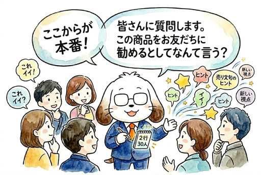 『皆さんに質問します。この商品をお友だちに勧めるとしたらなんと言いますか?』