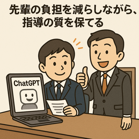 でもChatGPTが新人さんと協力して、ある程度ちゃんとしたモノを代わりに出してくれたら、先輩も“最後のチェックだけ”に集中できます。