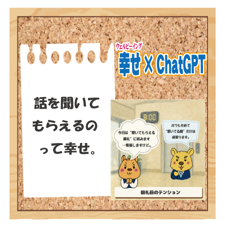 今日は、ビジネスと家庭の両方で「話を聞いてもらえる幸せ」を、ChatGPTくんの力を借りてつくっていきましょう。